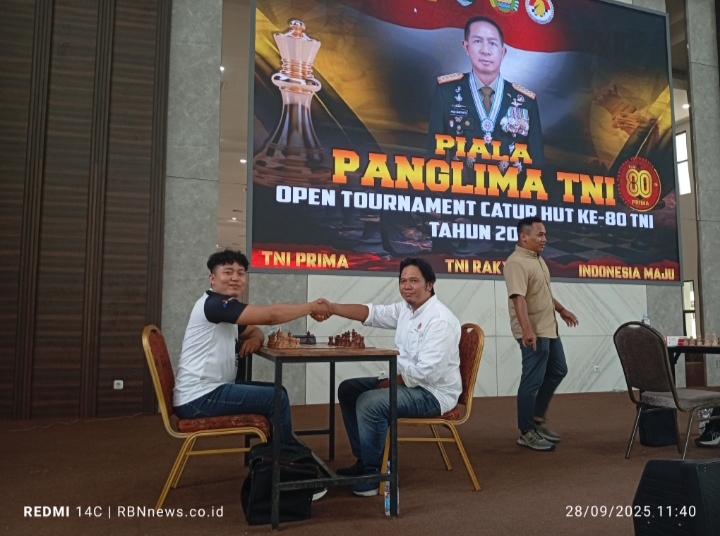 RBNnews.co.id, Pekanbaru – Atlit Catur Kota Batam, Hamdan Yelpi berhasil meraih juara 1 pada ajang Open Turnamen Catur Piala Panglima TNI Tahun 2025 yang digelar di Kodam XIX/Tuanku Tanbusai Pekanbaru, Minggu (28-09-25).