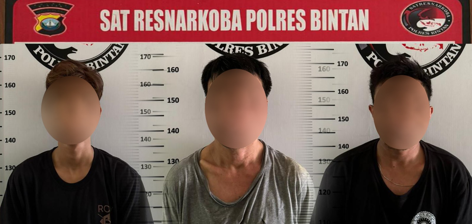 Ketiga tersangka saat ini telah kami tahan di Polres Bintan dengan pasal 114 ayat 1 dan atau pasal 112 ayat 1 jo pasal 132 ayat 1 Undang-Undang Nomor 35 tahun 20029 Tentang Nasrkotika dengan ancaman minimal 4 tahun paling lama 15 tahun Penjara.