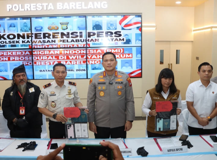 Dalam Konferensi ini Kapolresta Barelang menyampaikan bahwa pengungkapan kasus ini berawal dari upaya pencegahan keberangkatan PMI non prosedural oleh Unit Reskrim Polsek KKP di Pelabuhan Ferry Internasional Batam Center pada Kamis, 16 April 2026.